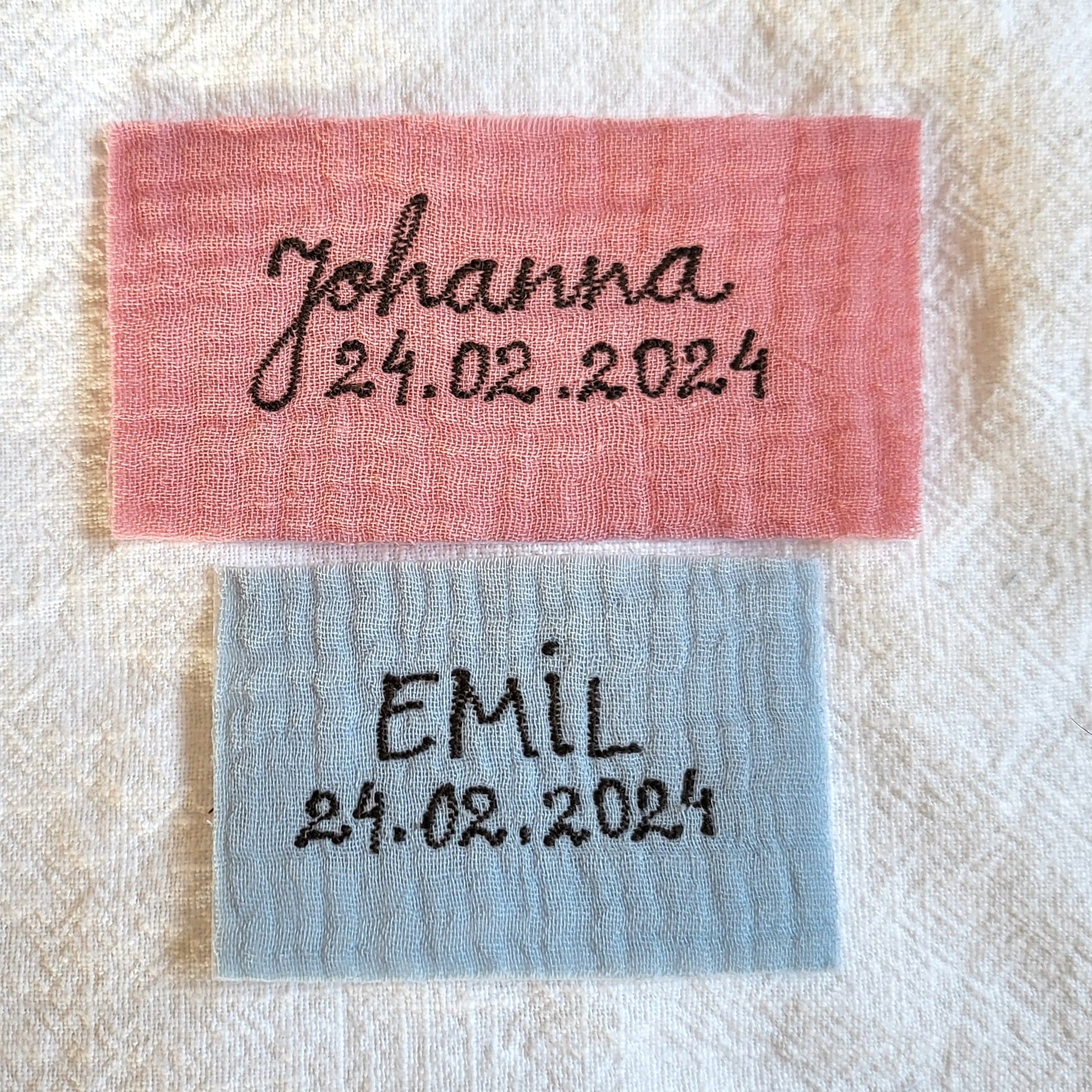 On the dragon's lovey, we write the personalization directly on the inside muslin fabric. The last photos show examples of what the different variants look like.
