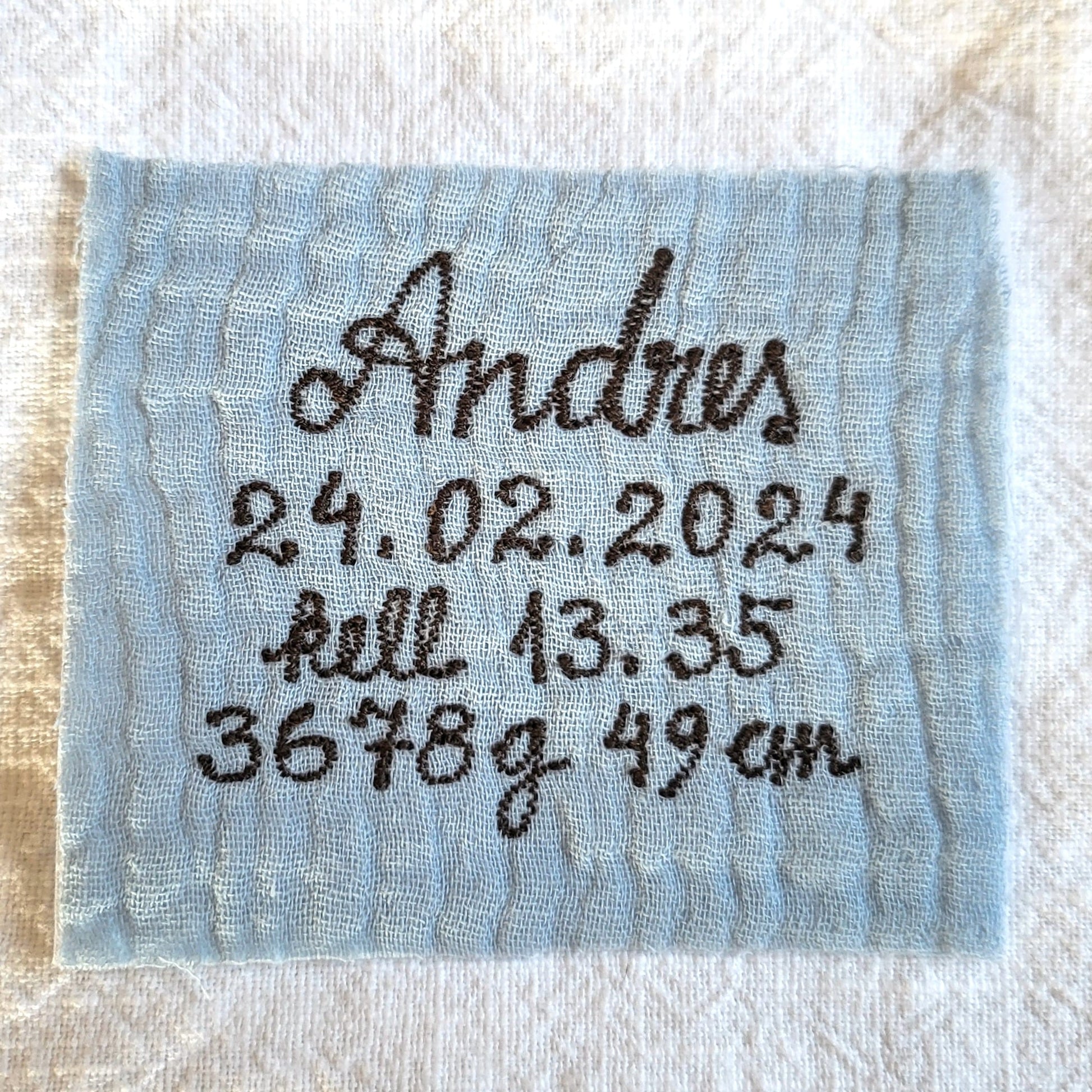 If you wish, we can also write a name, name and date, name and heart or a text of your choice (e.g. all the child's birth details) on the lovey. To do this, please select the appropriate option from the "personalization" drop-down menu and add the desired text to the "personalization description" box.