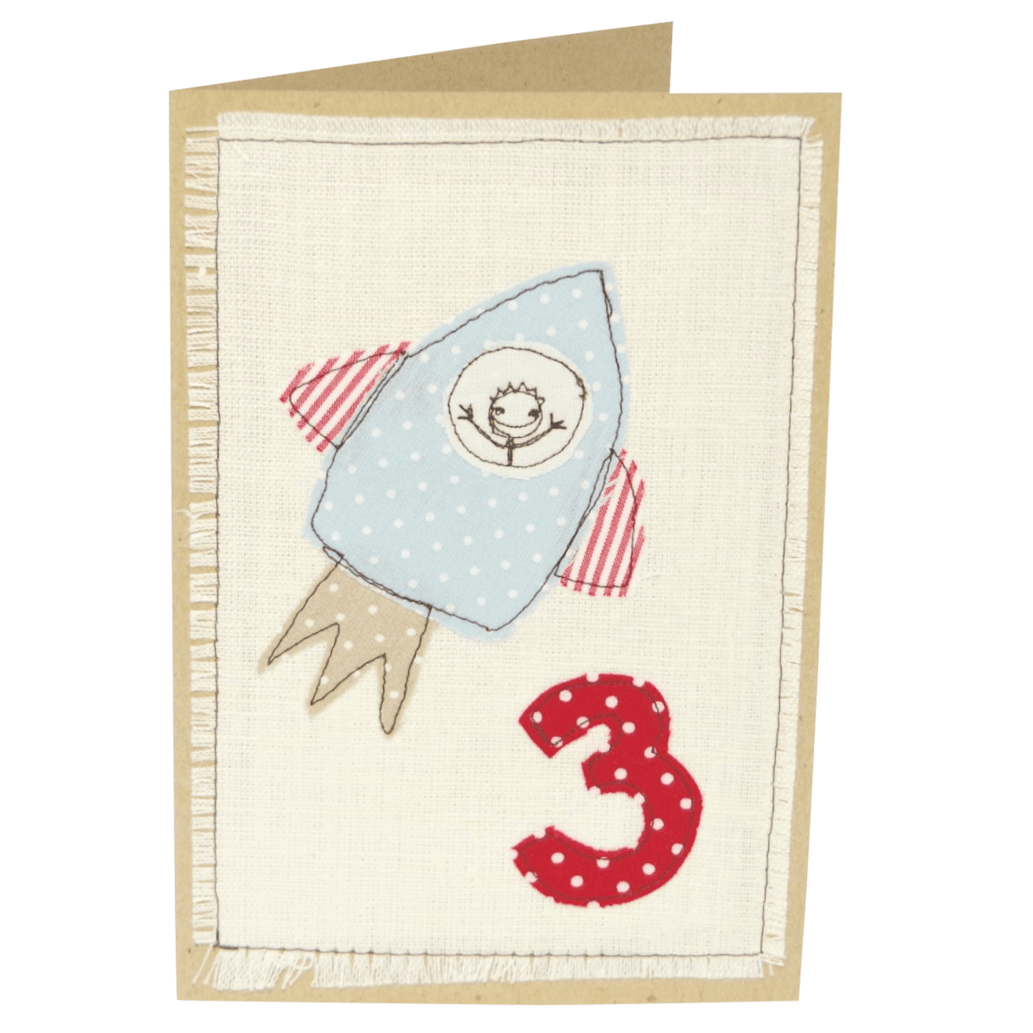 Poisilik raketi aplikatsiooniga 3. sünnipäeva kaart. Sobib hästi nii kolme kuu kui kolme aasta vanusele poisile :). Tikime lisaks numbrile soovi korral kaardile ka lapse nime.