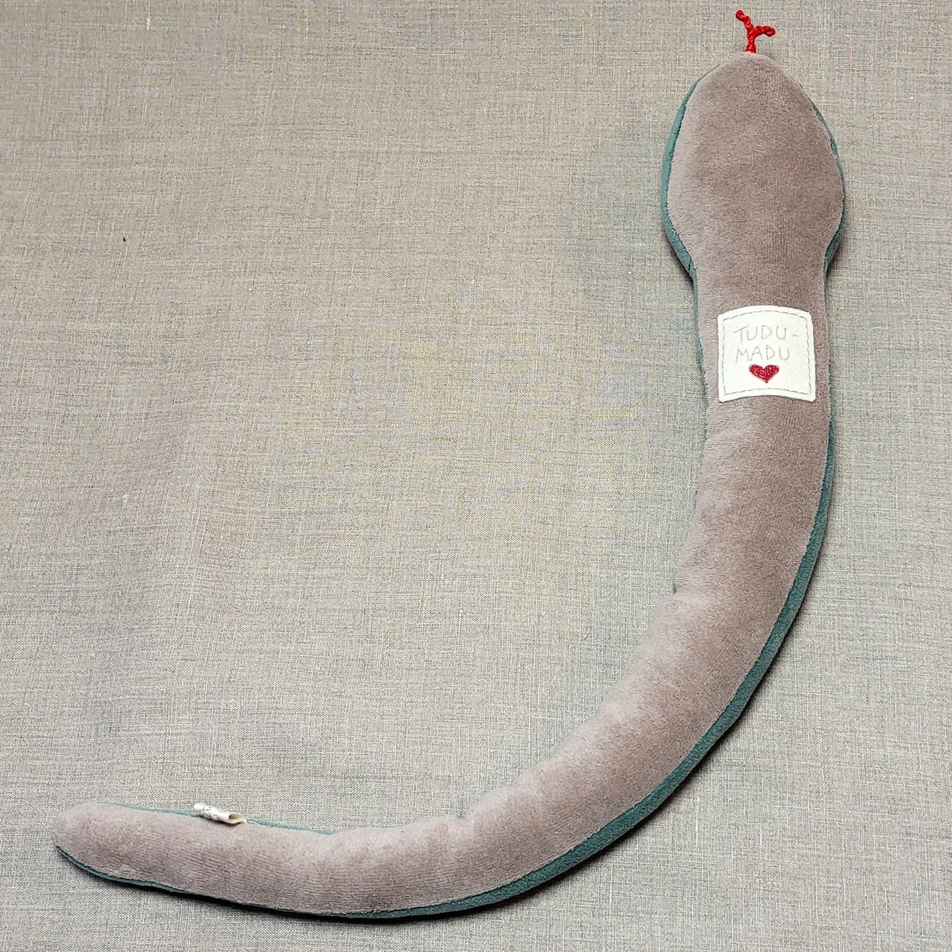 Pehme, kerge ja armas beeži kõhualusega roheline tudumadu. Ilus ja stiilne nimeline katsikukingitus mao aastal sündinud lapsele.