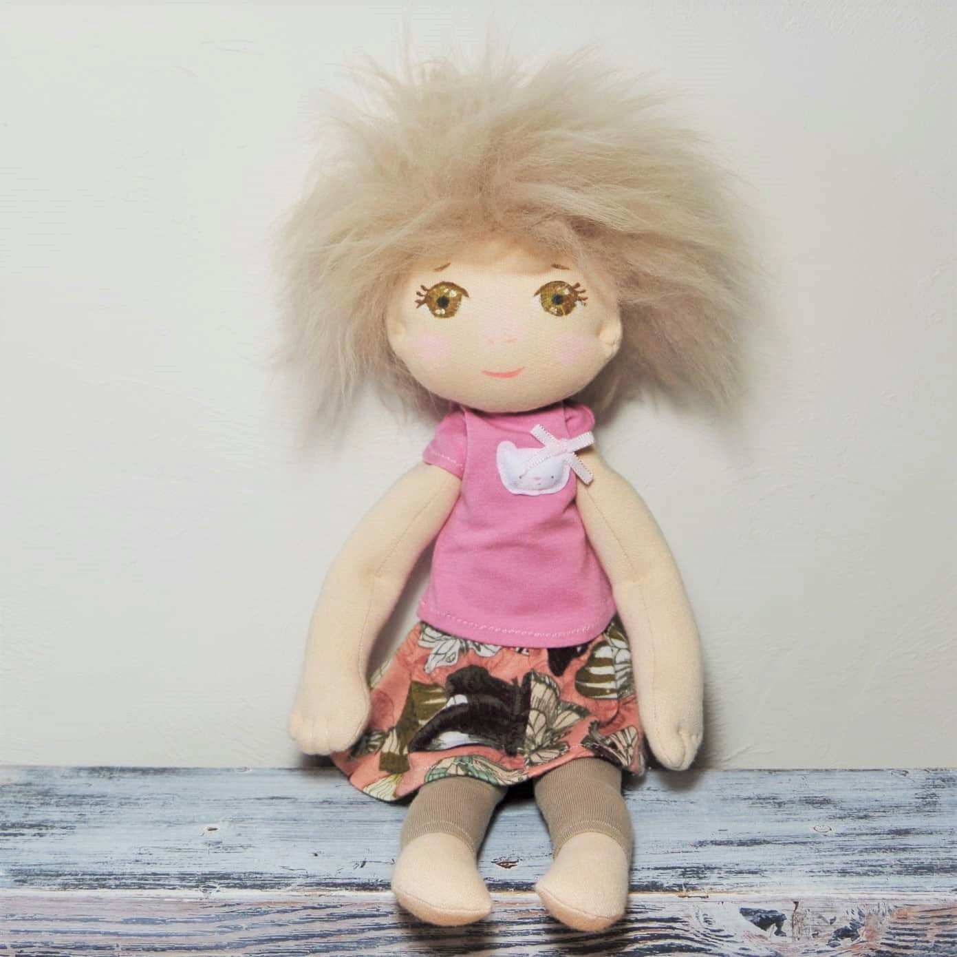 Sain väga armas ja mängitav, minu riided käivad seljast ära ning käed-jalad liiguvad. Juuksed on lambanahast ning silmad joonistatud tekstiilivärvidega.